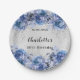 Assiettes En Carton Fleurs bleu argenté