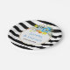 Plaque de papier mariage floral moderne et chic avec motif rayé noir et blanc, cercle blanc au centre avec votre texte et jolies fleurs folkloriques bleu et jaune aqua. C'est un choix parfait pour votre mariage douche nuptiale ou table de fête.