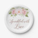 Assiettes En Carton Fleurs d'aquarelle rose pâle parsemées d'amour