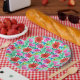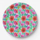 Plaques de papier fête d'anniversaire rose, vert, rouge et violet motif floral.