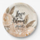 Love in Bloom ! et vos détails sont imprimés sur un collage de fleurs de pêcher élégantes, de terracotta pâle et d'argent dans un style aquarelle ainsi que de feuilles brunes élégantes sur ces assiettes en papier. Parfait pour les douches de mariée, les mariages, les fêtes d'anniversaire ou toute autre occasion. ARTICLES assortis dans notre collection.