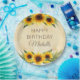 Fleurs de soleil rustiques jaunes et marron avec de belles plaques de papier "Joyeux Anniversaire" feuilles vertes pour femmes personnalisées avec son nom.