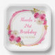 Assiettes En Carton Fleurs élégantes roses et or chaud Anniversaire