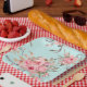Assiettes En Carton Fleurs rose pâle sur bleu clair