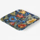 Belles plaques de papier floral aux fleurs de style William Morris bleu, jaune, rouge et orange. Une élégante et élégante serviette en papier design rétro avec des pivoines, des pavots et des tulipes.