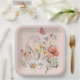 Assiettes En Carton Fleurs sauvages roses pêche carminé carré