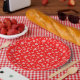 Assiettes En Carton Flocons blancs sur motif hiver rouge