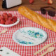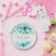 Bleu turquoise fleurs vertes cadeaux de mariage floral assiettes personnalisées en papier, tons froids, agréable pour les réceptions hivernales.