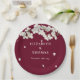 Elégante jolie plaque en papier mariage fleurie et fleurie fleurie, délicate fleur de printemps sur un arrière - plan chic bordeaux. Personnalisez avec vos noms et votre date spéciale, mis en lettres blanches élégantes. Conçu par Thisisnotme©
