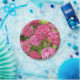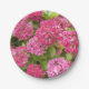 Plaques en papier avec photo de fleurs de Pink Hydrangea et de feuillage vert, parfaites pour un pique-nique d'été, un barbecue, une fête d'anniversaire ou une fête du thé de l'après-midi ! Un joli design floral ! Sélectionnez le style et la taille de votre plaque de papier.
