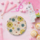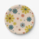 Assiettes En Carton Flower Power Retro 60s Pattern Mustard Blue Orange