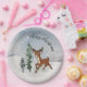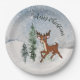 Joyeux Noël & Joyeuse plaque de papier de nouvelle année avec un bébé cerf joyeux courant dans une belle aquarelle arrière - plan de forêt enneigée. Parfait pour le dîner de Noël. Customisez-le avec votre message personnel pour ajouter une touche spéciale. Pour plus de personnalisation, cliquez sur le lien "Personnaliser" et utilisez notre outil de conception pour modifier ce modèle.