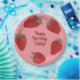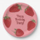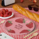 Ces plaques en papier sont des illustrations de fraises rouges mûres qui semblent assez bonnes pour manger. Les graphiques de fraise sont placés contre un arrière - plan rose. Votre texte personnalisé apparaît au centre en lettres rouges foncées.