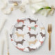 Parfait pour les amateurs de chiens et de chiens errants, ce dessin à motifs présente des couleurs rose corail, bleu turquoise, menthe, jaune, crème et marron avec des chiens portant des colliers et des pull-overs damassés.