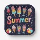 Bright and colorful popsicles, ice cream cones, and refreshing drinks are arranged around the word "Summer," creating a lively and festive atmosphere