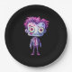 Plaques en papier avec une jolie illustration. Monstre Frankenstein aux cheveux roses et violets et costume et cravate en dapper.