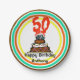 Assiettes En Carton Gâteau d'anniversaire en feu avec 50 bougies