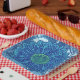 Assiettes En Carton Gerbera Daisy Block Print, Cerulean & Indigo Blue