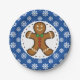 Assiettes En Carton Gingerbread Man on Blue White Snowflakes