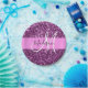 La parties scintillant violette de verre brille le nom de monogramme blanc et la plaque papier initiale. Votre nom personnalisé et votre monogramme sont écrits dans un élégant script écrit à la main avec un arrière - plan rose. Vous pouvez modifier la couleur du texte, le style et la taille de police à l'aide de l'option personnaliser.