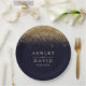 Gold Confetti Marine Bleu Plaque en papier Mariage moderne. Beau confetti vintage en or glam simple contre un arrière - plan bleu marine. Ce design personnalisé et moderne peut facilement être personnalisé avec vos propres détails.