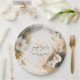 This unique paper plate is part of a sophisticated twenty-fifth anniversary collection. The design features soft watercolor tones of beige and charcoal, highlighted with shimmering gold accents and delicate floral line art. Bold typography balances beautifully with graceful script details, creating a sophisticated and romantic look. Perfect for celebrating '25 years of love' in timeless style. Search ID1169 to see other products in this design set.