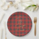 'Ce texte de la saison dans un faux script de feuille d'or et vos noms en lettres chic est présenté sur ces plaques de motif plaid de buffle rouge et gris, parfait pour toutes les occasions de vacances. CORRESPONDRE des articles dans notre magasin.
