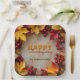 Ajoutez votre table avec notre plaque en papier Thanksgiving. Le design encadre votre repas d'une frontière époustouflante de feuilles d'érable en or et en pourpre, accentués par des grappes de baies rouges vifs. La pièce maîtresse comprend un arrière - plan parchemin avec les mots "Bon thanksgiving" et une ligne personnalisable pour votre nom de famille. Cette plaque durable et jetable apporte une touche d'élégance naturelle à votre fête de vacances.