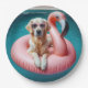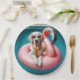 Assiettes En Carton Golden Retriever Floating On a Flamingo Pool Toy