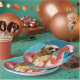 Assiettes En Carton Golden Retriever Floating On a Flamingo Pool Toy