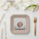Ajoutez votre photo préférée à ces plaques de papier beige taupe carré avec votre nom, année de classe et le mot diplômé en lettrage chic sur un arrière - plan bleu. PLUS de designs et de couleurs réalisés dans notre collection.