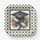 A Black And Gold Polka Dotted Paper Plate With Graduation Cap And Diploma Center
