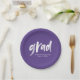 Ajoutez une touche personnalisée à votre fête de remise des diplômes avec des plaques de papier de remise des diplômes. Les plaques de papier de graduation affichent "grad" en lettres peintes en blanc avec un arrière - plan violet ou la couleur de votre choix. Personnalisez les plaques de papier violet de graduation en ajoutant le nom du diplômé et l'année de graduation.