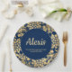 Elégante plaque en papier bleu marine vintage et or de la fête de graduation avec parties scintillant or pour le baccalauréat ou collégial. Personnalisez avec votre nom, votre école et votre année de diplôme.
