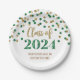 Classe graduation personnalisable de 2024 assiettes en or glamour et vert confetti motif et élégant texte en lettres de style.