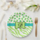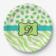 Assiettes En Carton Green White Zebra Leopard Skin Monogram