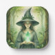 Ces assiettes de fête sont ornées d'une sorcière fantaisiste d'aquarelle tenant un cristal vert