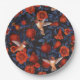 Assiettes En Carton Grenade et colibris/feuilles bleus sur noir