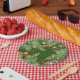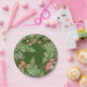 Des fougères d'aquarelle, des champignons, des baies et de petites créatures forestières - une grenouille d'arbre, des coccinelles et des abeilles, encerclent ces jolies assiettes. Parfait pour toute saison, la verdure laisse présager le printemps. Superbes assiettes de pique-nique. Les champignons des bois, sujet populaire, ajoutent de l'intérêt et de la couleur. Ce dessin animal en bois a un arrière - plan vert foncé. Oeuvre et design originaux de Tuzi Williams.