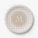 Assiettes En Carton Guingan beige et blanc, votre monogramme