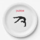 Assiettes En Carton Gymnastics paper plates with personalized name.
