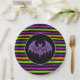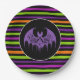 La plaque de papier de fête d'Halloween est présentée avec une impression festive rayée chauve-souris. Couleurs Black & Orange Multi. Customisez cet objet ou achetez tel quel. Image sous licence