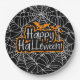 Une Bonne Plaque En Papier Halloween En Noir Avec Cobwebs Blanches Et Bats Oranges Pour Les Fêtes D'Halloween