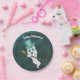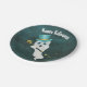 Cette plaque en papier a un fantôme blanc fantaisie flottant dans un ciel étoilé rempli d'étoiles portant un chapeau bleu dessus et tenant une canne noire et or surmontée d'un crâne doré. Customisez le texte Happy Halloween avec le modèle.
