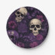Une magnifique plaque de papier de fête d'halloween violet violet. Ce moody goth violet et noir design présente des fleurs et des crânes. Une excellente façon d'ajouter un splash de style éffrayant à votre table d'halloween.