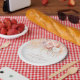 Fleurs en terre cuite et assiettes en papier d'herbe des pampas