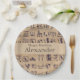 Cette assiette de fête personnalisée est décorée sur le thème de l'art égyptien ancien. Une série d'hiéroglyphes égyptiens sont imprimés sur un papier parchemin arrière - plan. Un exemple de message et de nom Joyeux pour l'anniversaire sont imprimés au centre sur un beige sablonneux assorti.
