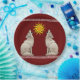 Graphique coloré de coyotes hurleurs aux couleurs et au style de l'art traditionnel du sud-ouest.