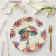 Le design de ces plaques en papier est vintage de style floral. Il y a un parapluie très coloré avec un bouquet de fleurs autour.