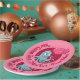Ces adorables plaques en papier rond illustrent joliment une pieuvre tenant des ballons à air rose en forme de coeur dans ses tentacules. Couleurs vives et design ludique avec un modèle texte personnalisé pour votre message unique.